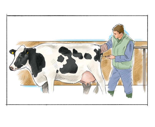 Uma vitela está pronta para ficar prenha por volta dos 13 a 14 meses de idade. O responsável da exploração monitoriza de perto a vitela, para perceber se ela está no cio. "Estar no cio" significa que ela está muito fértil naquele momento e pode começar a comportar-se de forma agitada. Ela pode montar (subir) outras vacas, por exemplo, ou permitir que outra vaca a monte.
